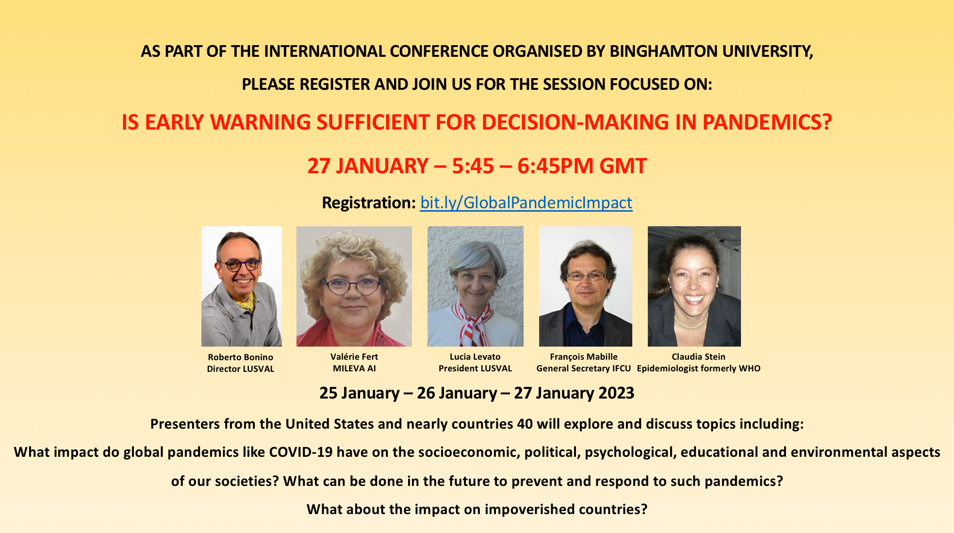 “CHALLENGES OF GLOBALIZATION” – 16, 17, 18 MARCH, 2021 MILEVA, SPEAKER OF THE ONLINE INTERNATIONAL CONFERENCE What is the reality, what is the history behind the term globalisation? What are its stakes and challenges? Does the COVID-19 pandemic change them or bring new ones to the fore? Mileva sheds light on these questions together with an impressive array of participants from academia and the private sector speaking from Asia, Africa as well as America and Europe.